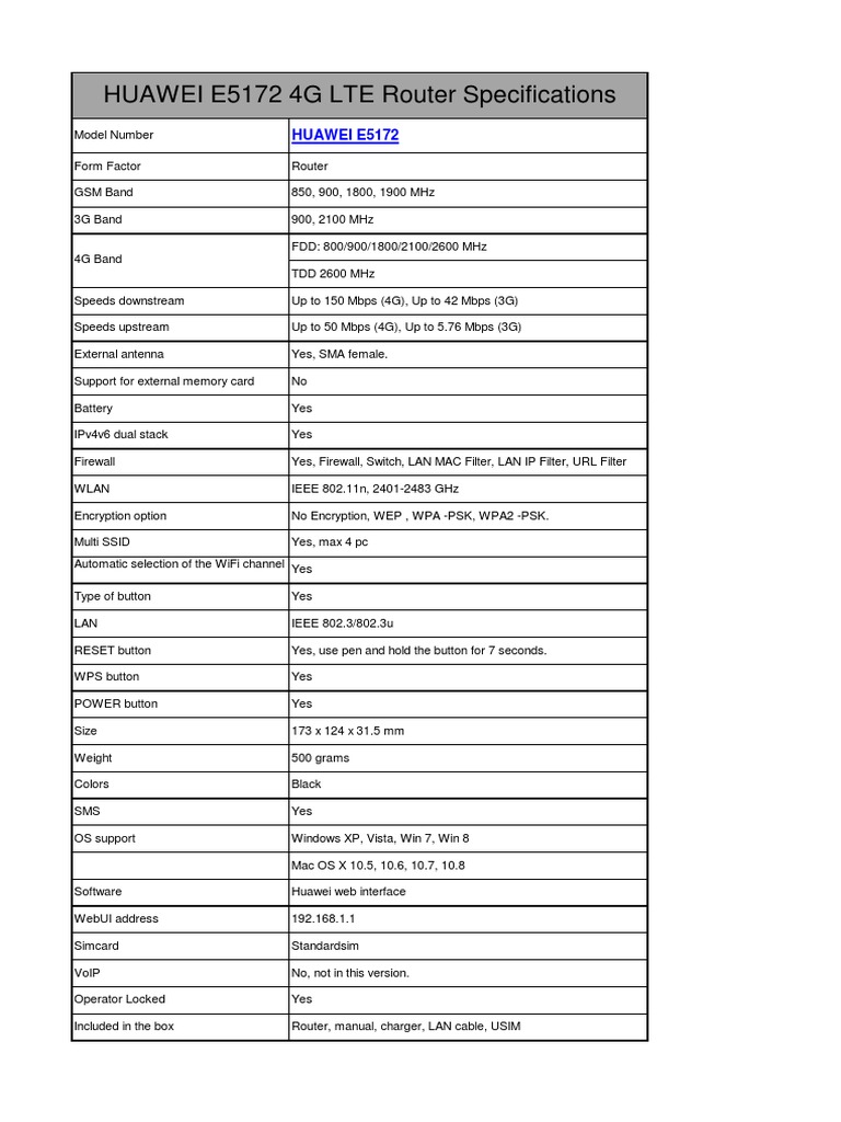 Huawei E5172 4g Lte Cpe Router Specifications 4 G Wi Fi